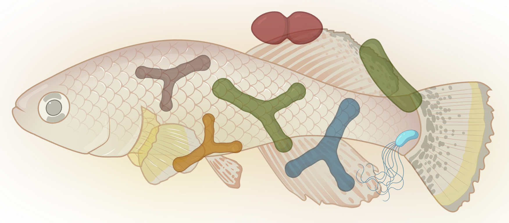 The gut microbiome changes dramatically as killifish age, and those changes feed back on host health. We study how hosts select their microbial community across the lifespan, whether commensal microbes evolve within a single host generation, and how shifts in microbial composition affect systemic aging and pathology. We use microbiota transplants, culturomics, and longitudinal metagenomic sequencing to move from correlation to causation in host-microbiome interactions.